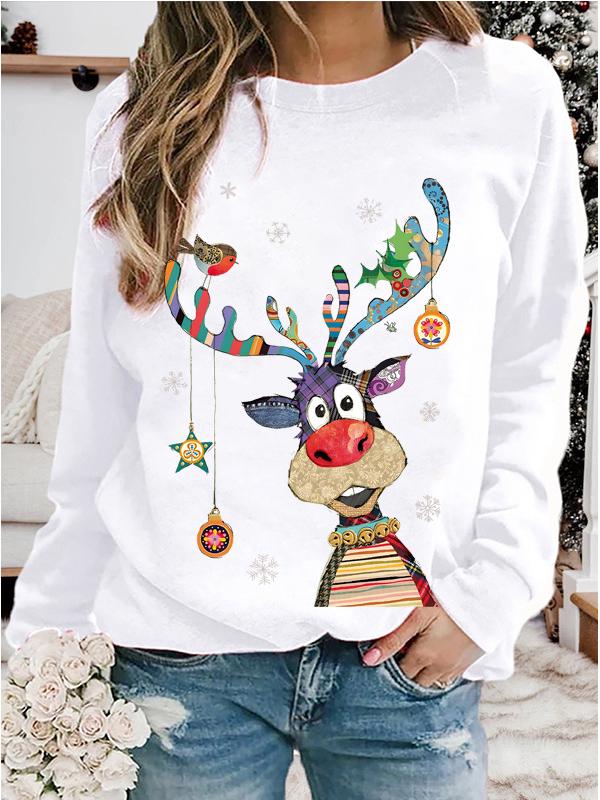 Damen Weihnachten Rundhals Langarm Lässiges Lockeres Bedrucktes Sweatshirt