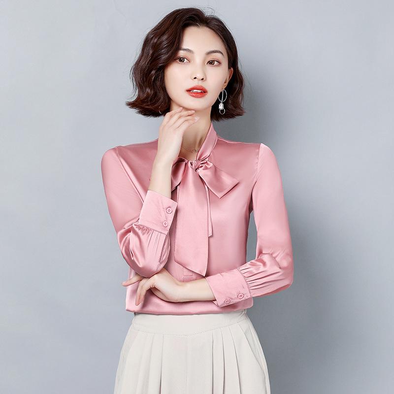 2025 Neues Damen Übergröße Langarm Maulbeerseidenhemd: Vielseitige Unifarbe für Frühling & Herbst