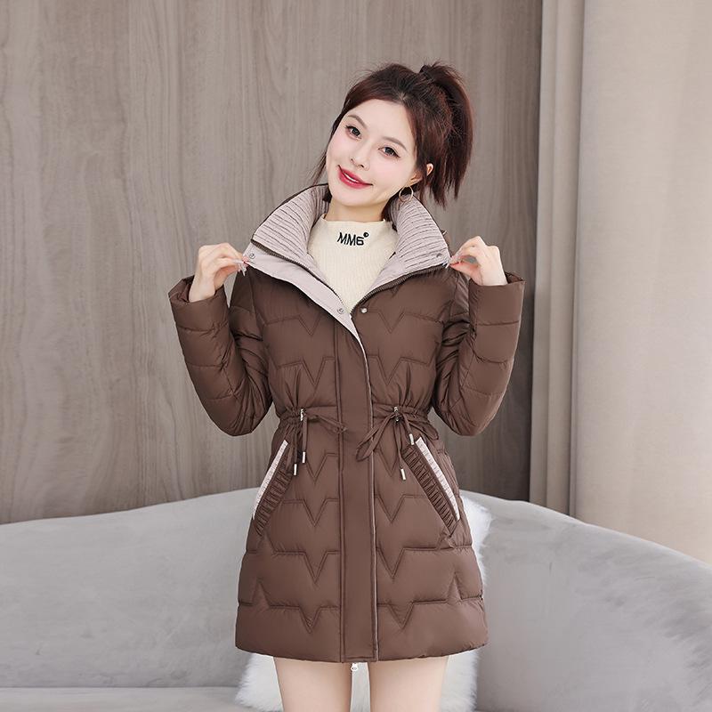 Damen Wintermantel im koreanischen Stil - Schlank geschnitten, dick, warm, mittellang, wattierte Jacke
