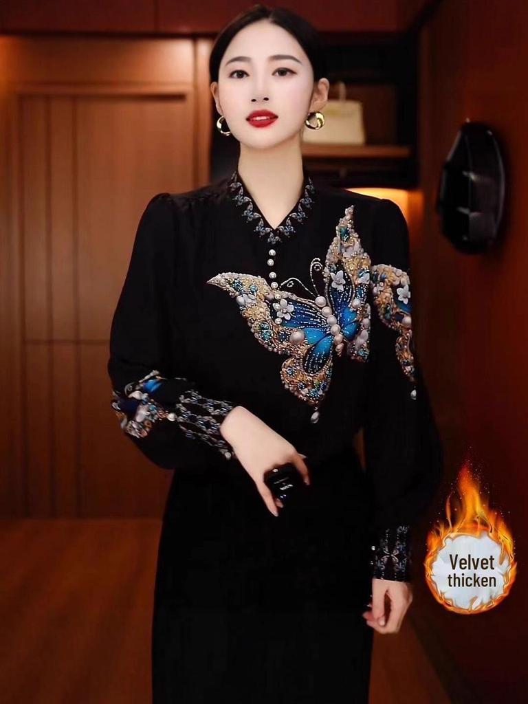 Stilvolles, mit Samt gefüttertes Herbst/Winter-Schlankheitsoberteil für Damen