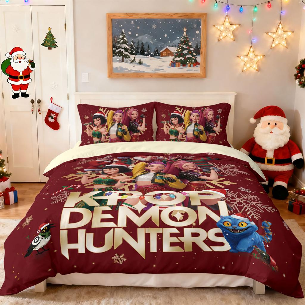 3-teiliges Weihnachten K-Pop Dämonenjäger Druck Kernloses Bettwäscheset Mehrere Größen Schlafzimmer Bettwäsche Dekoration Maschinenwaschbar