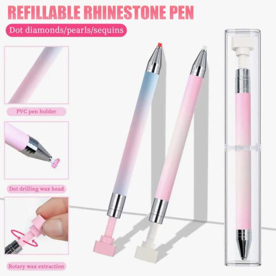 Yousheng 1/2 Stück Strass-Applikator-Werkzeug mit Nachfüll-Wachspads Strass-Aufnehmer Nachfüllbarer Wachsstift DIY Nailart Strass-Malerei Punktier-Wachsstift
