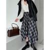 Ju Zhi Herbst Karomuster High Waist A-Linien Midi-Rock - Unregelmäßiges Design, Figurbetonte Passform