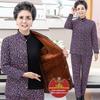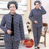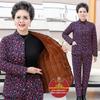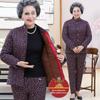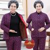 Omas kuscheliges, fleecegefüttertes Winterset: dicke, baumwollgepolsterte Jacke und Hose für Frauen mittleren Alters und Senioren.