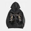 Trendiger schwarzer Damen-Langarm-Loose-Hoodie mit amerikanischem High-Street-Print für den Herbst