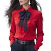 Herbst Damenhemd Revers Schleife Rüschendesign Langarmhemd Oberteile Knopfverschluss Vielseitige Passform Hemd Alltagskleidung