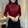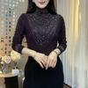 Europäischer Stil Damen Strass Halbhoher Kragen Langarm T-Shirt