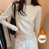 Damen Amerikanischer Retro Grau Langarm Fleece Oberteil - Europäischer Stil Schlankmachende Herbst Basisschicht