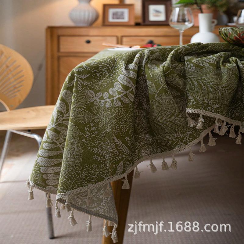 Bohemian Green Leaf Print Table Cloth Rectangular Party Picnic Dinner Decorative Tablecloth