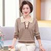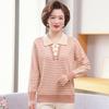 2025 Frühling/Herbst Modischer gestreifter Strickpullover für Frauen mittleren Alters und ältere Frauen mit Reverskragen