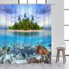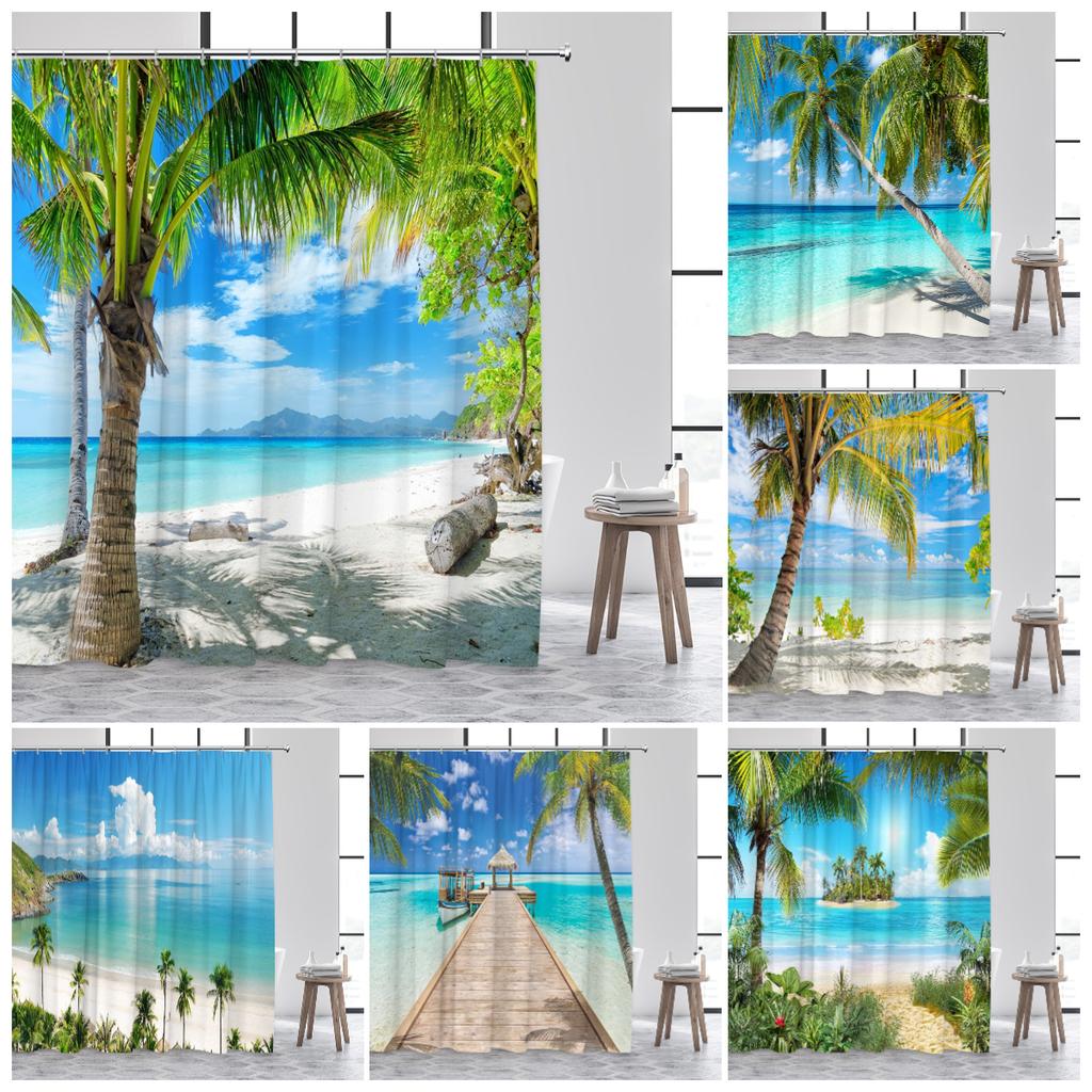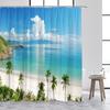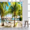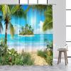 Strand Duschvorhänge Blaues Meer Insel Kokospalmen Tropisch Hawaii Natur Landschaft Badezimmervorhang Dekor mit Haken