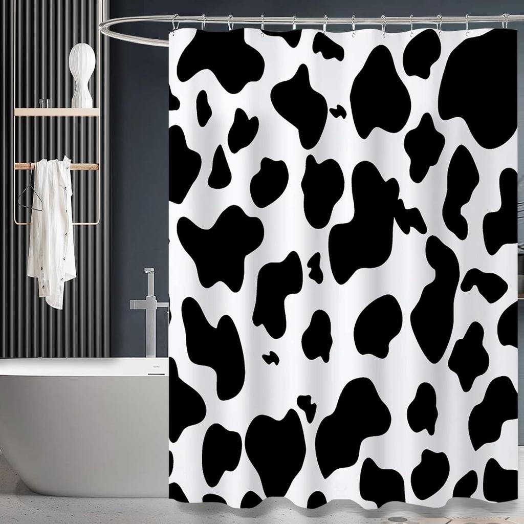 Cow Print Shower Curtain, Black & White Animal Design, Polyester Fabric With Hooks
