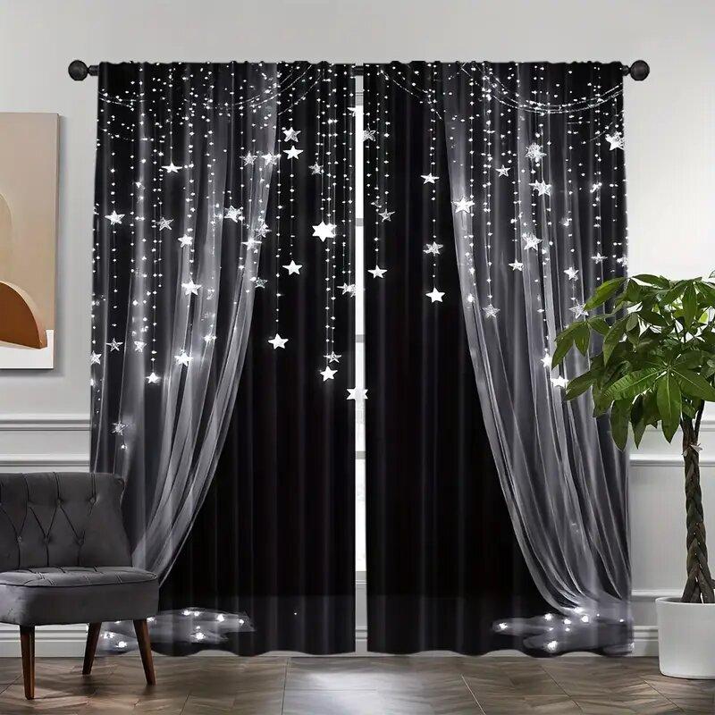 Star-Printed Curtains, Christmas Decorations, Bedroom And Living Room, Home Decoration, Room Decoration