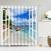 Hochwertige Duschvorhänge aus bedrucktem Stoff Sunny Beach Meereslandschaft Badewannenvorhang Wasserdichte Produkte Badezimmerdeko mit 12 Haken