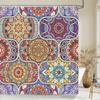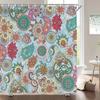 Duschvorhänge im Bohème-Stil Mandala Boho Blumen- und Pflanzendruck Badezimmervorhänge Wasserdichter Polyester Duschvorhang