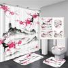 Chinese Style Flowers And Birds Waterproof Shower Curtain Set Toilet Seat Cover Bath Non-Slip Mat Rug Carpet Bathroom Decor
