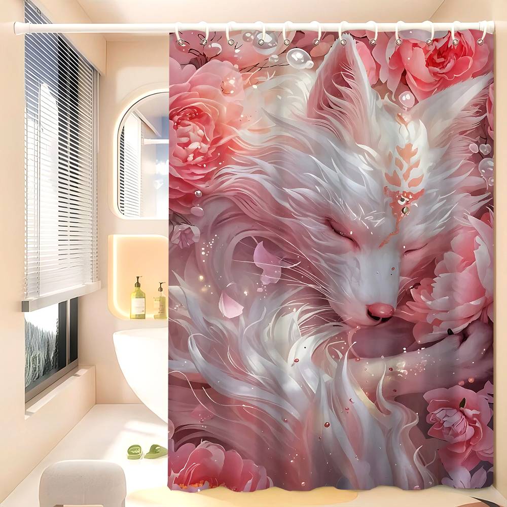 Fantasy Mystical Sakura Nine Tailed Fox 1PC Printed Shower Curtain Waterproof Washable With 12 Hooks Bathroom Shower Home Use