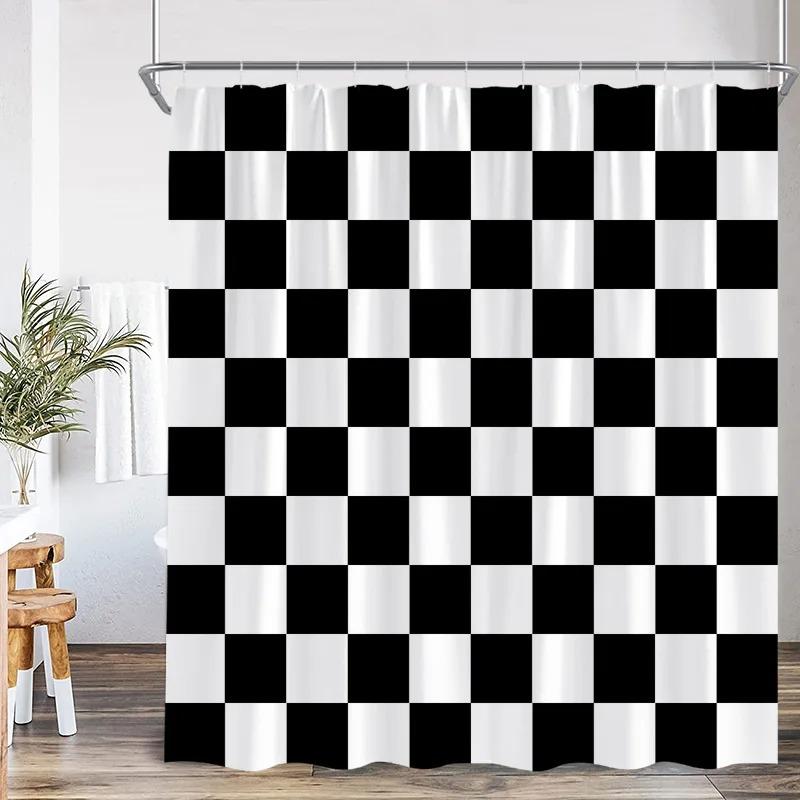 Black and White Check Shower Curtain Fashion Geometric Nordic Minimalist Modern Fabric Bathroom Bath Curtains Decor with Hooks