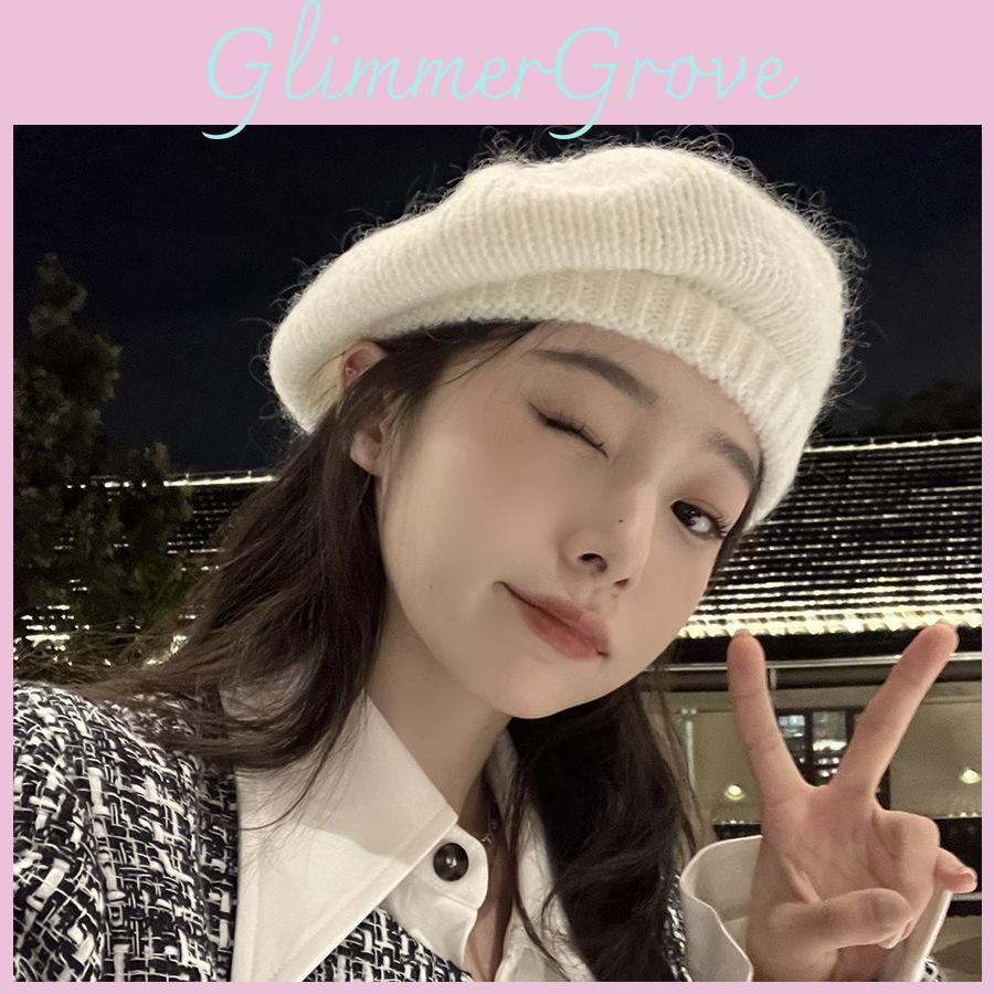 Stylish Knit Mohair Beret Hat For Women Warm And Fuzzy Painter Cap In Multiple Colors
