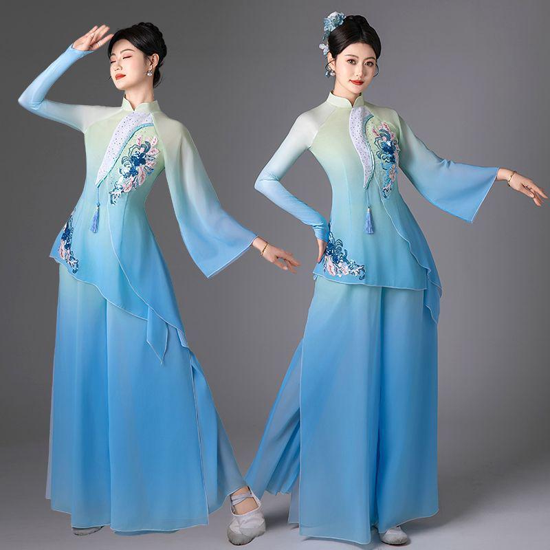 Klassisches fließendes Kunztanzkostüm für Damen für Square Dance, Jiaozhou Yangko, Fächertanz und Schirmtanz.