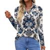 Damenmode Casual Revers Kurze Langarm Print Shirt Damen Button Up Tops
