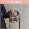 Artistic Retro Small Bear Embroidery Check Pattern Handbag For Outings Casual