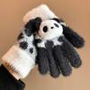 Niedliche Rote Panda Plüsch Strickfäustlinge für Frauen im Winter mit Touchscreen für Studenten, die Elektrofahrzeuge fahren, zum Warmhalten und verdickt