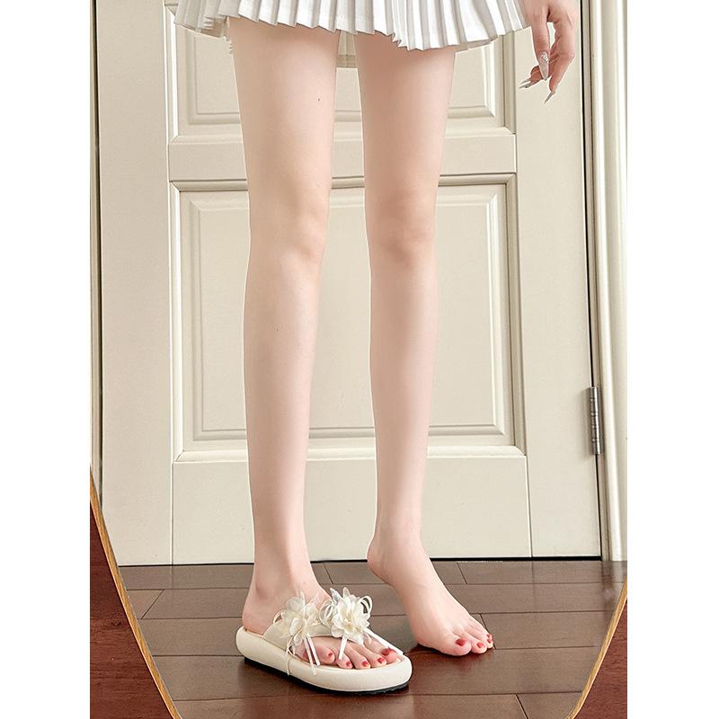 Dicksöhlige Zehensandalen Damen Sommerstil mit Rock Blumen Feenschuhe Weichsohlige Sandalen