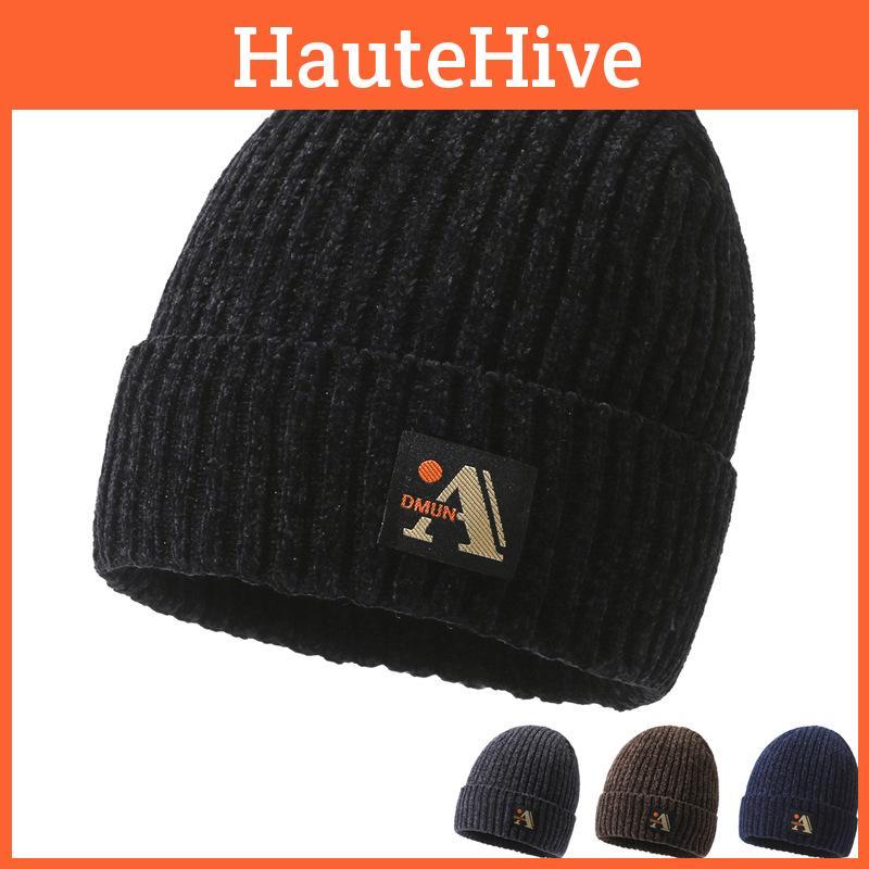 Printing A Letter Beanie Caps Solid Color Knitted Hat Windproof Fashion Gifts