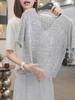 Übergröße 2025 Pailletten V-Ausschnitt Stricktop - Lockere Passform, Kurze Ärmel, Stilvolles Hohlmuster