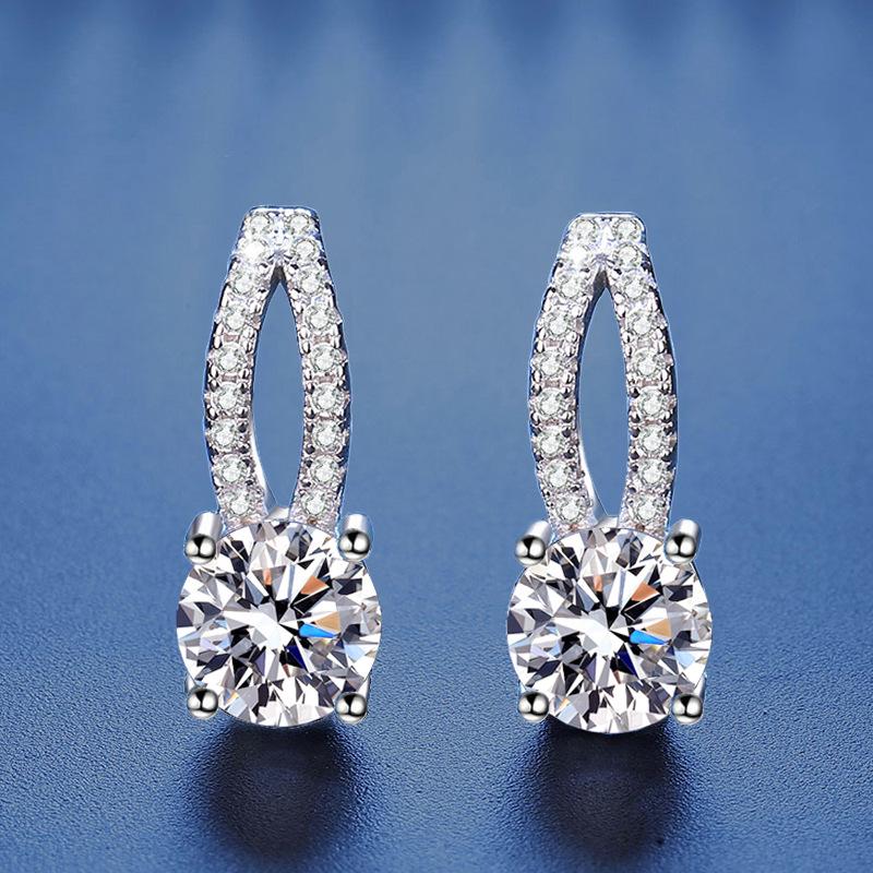 S925 Sterlingsilber Minimalistische Hasenohren Moissanit Ohrstecker mit einem Nischendesign.