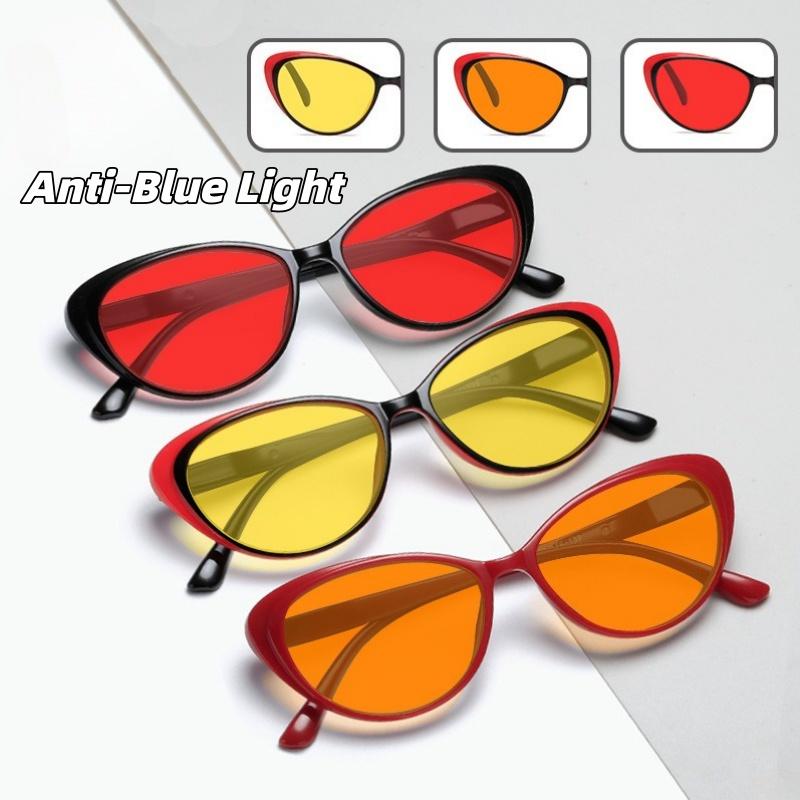 Retro Cat-Eye Nachtsicht Anti-Blaulicht Brille Rote & Orange Gläser Herren- & Damen Computer Gaming Schutzbrille