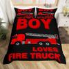 Fire Truck Bedding SetBurning Flames Duvet Cover for Kids Fire Engine Comforter Cover Red Truck Quilt Cover with 2 Pillowcases