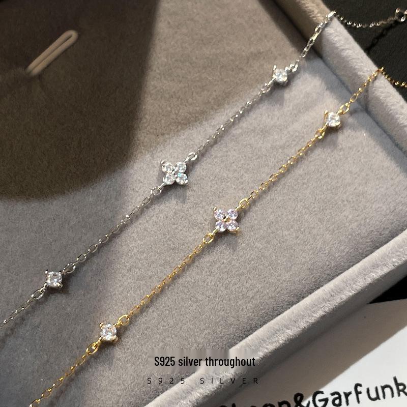 925 Sterlingsilber Diamant Kleeblatt Damenarmband – Luxuriöser Milchstraßen-Glanz, Elegant & Vielseitig.