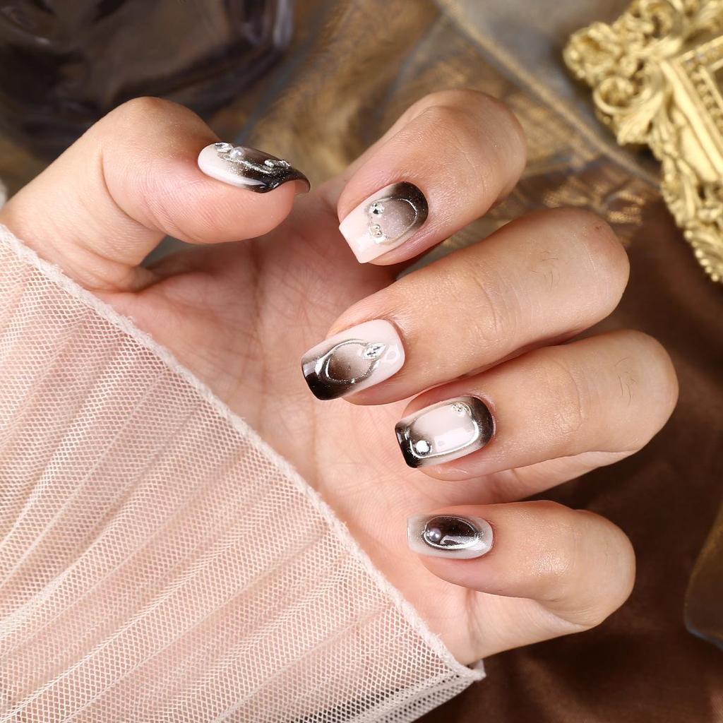 Handmade Black & White Short Style Chic Nails - Dark Elegant Look