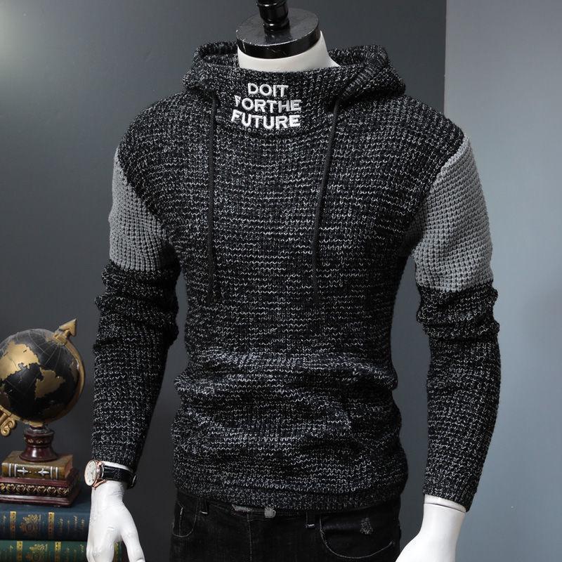 Herren Koreanischer Stil Slim Fit Rollkragen Kapuzenpullover Mantel - Jugend Winter Dicke Strickware