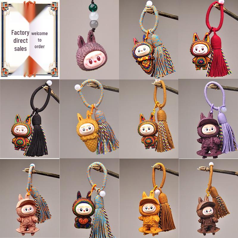Goldenes Sandelholz Labubu Puppe: Niedlicher Handy-Anhänger, Regenbogen-Spielzeugfigur, Heilendes System Geburtstagsgeschenk für Kinder