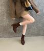 Damenstiefel mit quadratischer Schnalle, Wildleder, dünnem Absatz, Seitenreißverschluss, kurze Stiefel, Damen-Hochstiefel, schlanke Beine, hoher Schaft, elastische dünne Stiefel