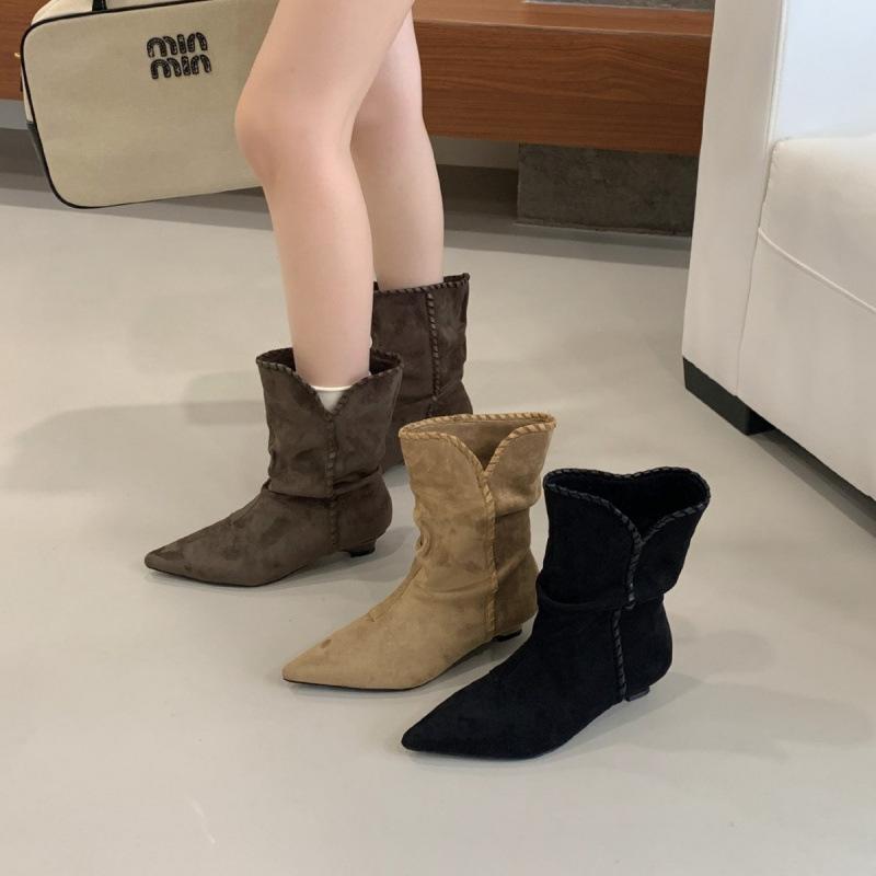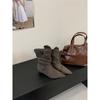 2025 Herbst neue Retro Low-Heel Maillard kurze Stiefel plissierte dünne spitze Pile-Stiefel Damen
