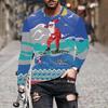 Herren T-Shirts Weihnachten Herren Neu Rundhals Langarm Street Fashion 3D Gedrucktes Herren T-Shirt