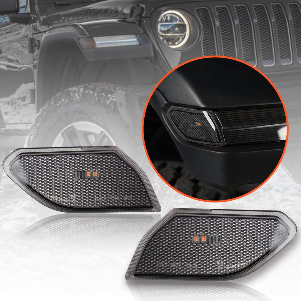 LitMiRaCle LED Seitenmarkierungsleuchte mit Rauchglas für Jeep Wrangler JL & Gladiator JT