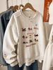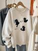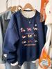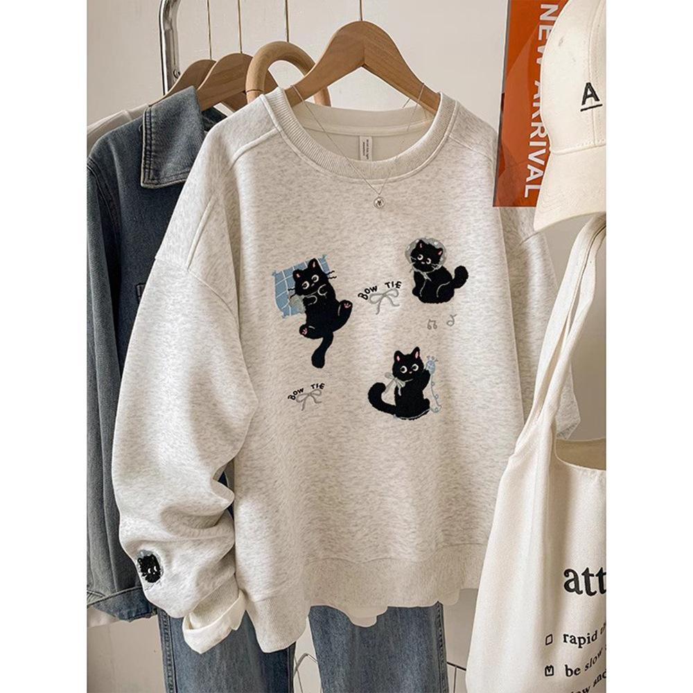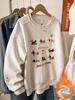 Damen Besticktes Graues Sweatshirt, Herbst/Winter 2025, Locker Geschnitten Übergröße, Petite Oberbekleidung Top