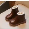 2025 Winter New Boots Fleece Leather Boots Children's Short Boots Soft Sole Boys and Girls Large Cotton Warm Martin Boots
