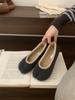 Retro rote einpedalige flachsohlige flauschige Schuhe für Damen zum Tragen im Herbst und Winter warme Samt-Beanie-Schuhe mit Zehentrenner Schweinsfüße Baumwollschuhe