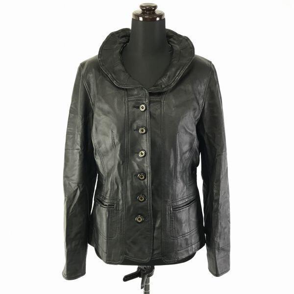 BELLUCCI Spanien Lammleder Rüschenkragen Jacke Damen M schwarz elegant(GEBRAUCHT)