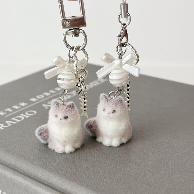 Cartoon Beflockte Katzen Hunde Anhänger Schlüsselanhänger Schlüsselring Für Frauen Mädchen Niedlicher Taschenanhänger Kawaii Handykette Geschenke