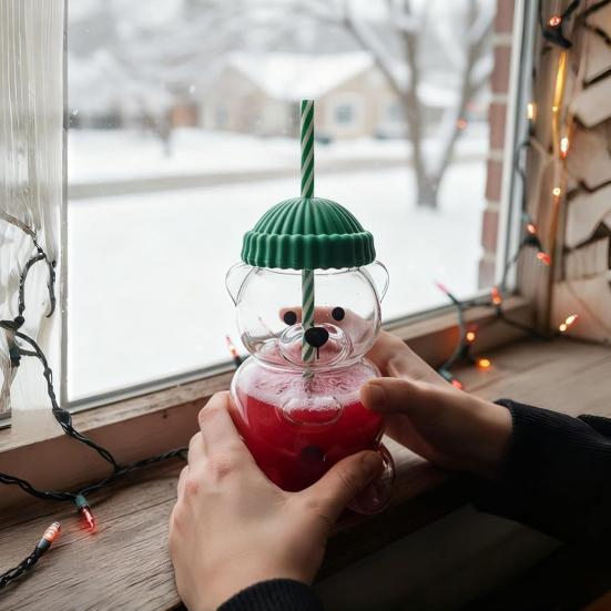 Yousheng Bär Strohbecher Niedlicher Kaffeebecher 20oz Lustige Glasbecher für Kaffee Milch Tee Saft Hitzebeständiges Glasgeschirr für Partys Zuhause Büro