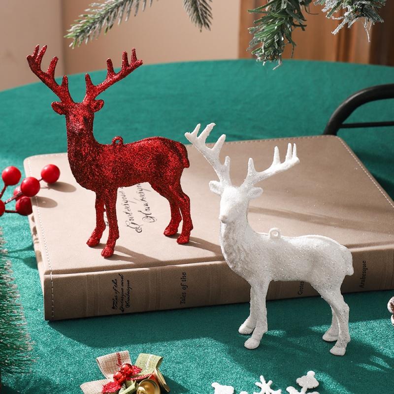 Weiße glitzernde Schneeflocken Weihnachtsdekoration Weihnachtsbaumhänger Elch-Ornamente Neujahrsgeschenke 2025 Party Heim Zimmer Statue Dekor