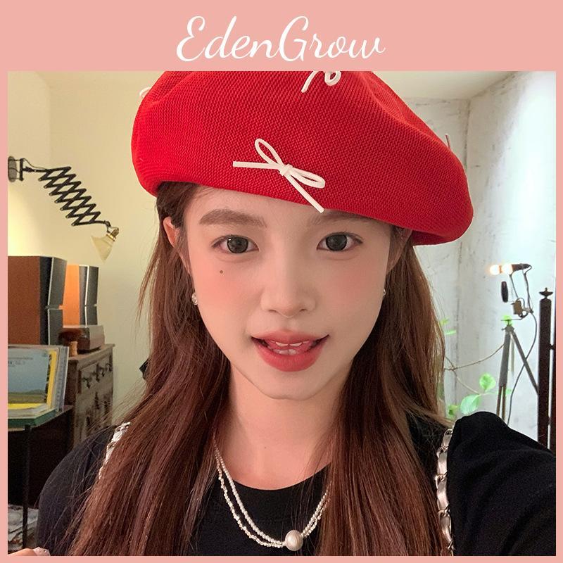 Bow Beret Red Painter Hat Uv Protection Breathable Female Style Lightweight