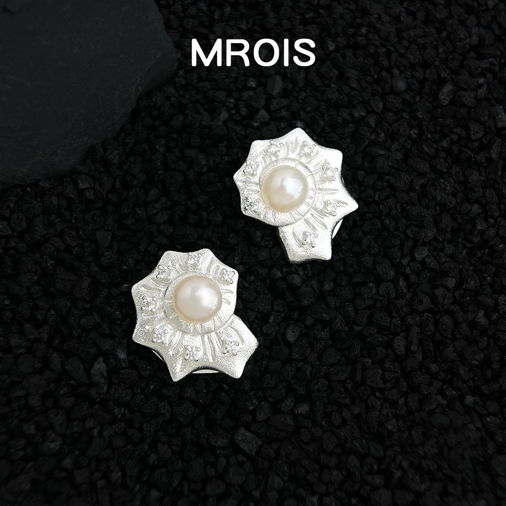 Matte sandgestrahlte Muschelperlen- & Zirkonia-Ohrstecker - Nischen-Literaturstil für Damen